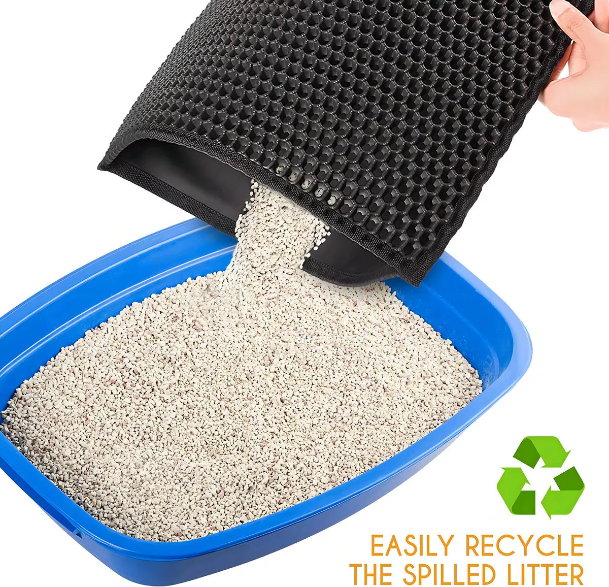 - ALFOMBRA DE DOBLE CAPA: El diseño de panal de abeja de doble capa ayuda a atrapar la basura de manera efectiva; Simplemente levante el tapete, comprima para separar las dos capas e inclínelo para volcar la basura en la caja o basura; No más pisar piedras de basura y barrer o aspirar constantemente; Los orificios tipo panal brindan una superficie acolchada para los gatos y permiten que la arena caiga a la capa inferior